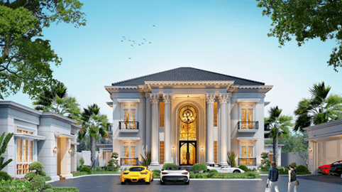Desain Rumah Mewah 2 Lantai Eropa dengan Gaya Klasik