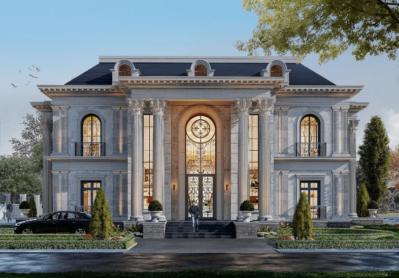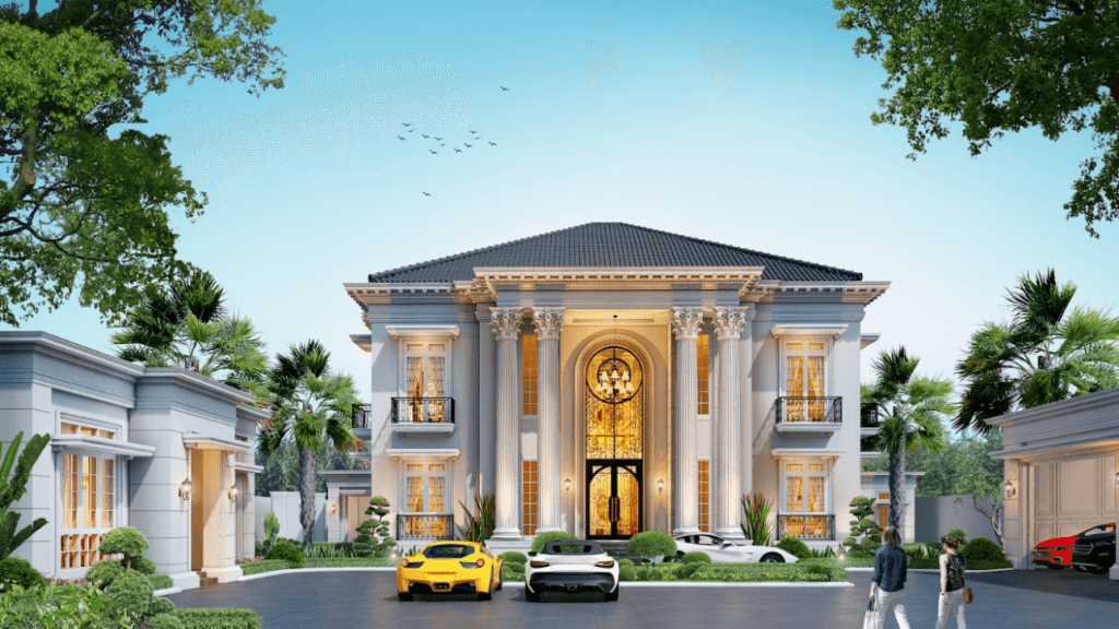 Rumah mewah dengan desain dua lantai yang mengadopsi gaya arsitektur klasik selalu menjadi daya tarik tersendiri bagi banyak kalangan. Keanggunan