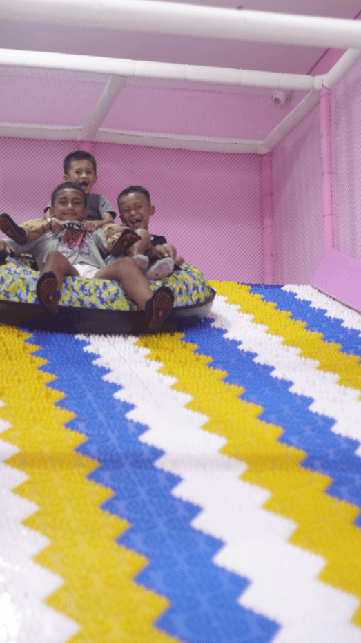 • Lantai Pertama: Tersedia wahana Kolam Bola, Rainbow Slide, Double Slide, Time Tunnel, Halang Rintang, Mini Boxing, dan Trampoline. Wahana ini membantu melatih kekuatan fisik serta keterampilan motorik kasar dan halus anak.